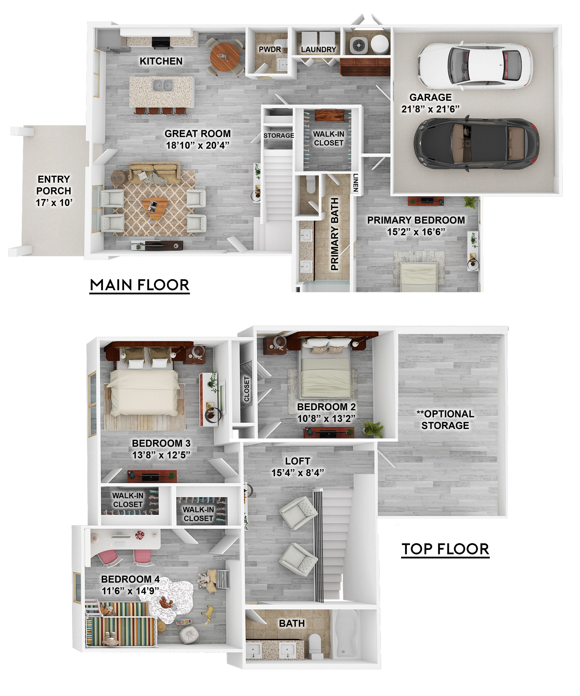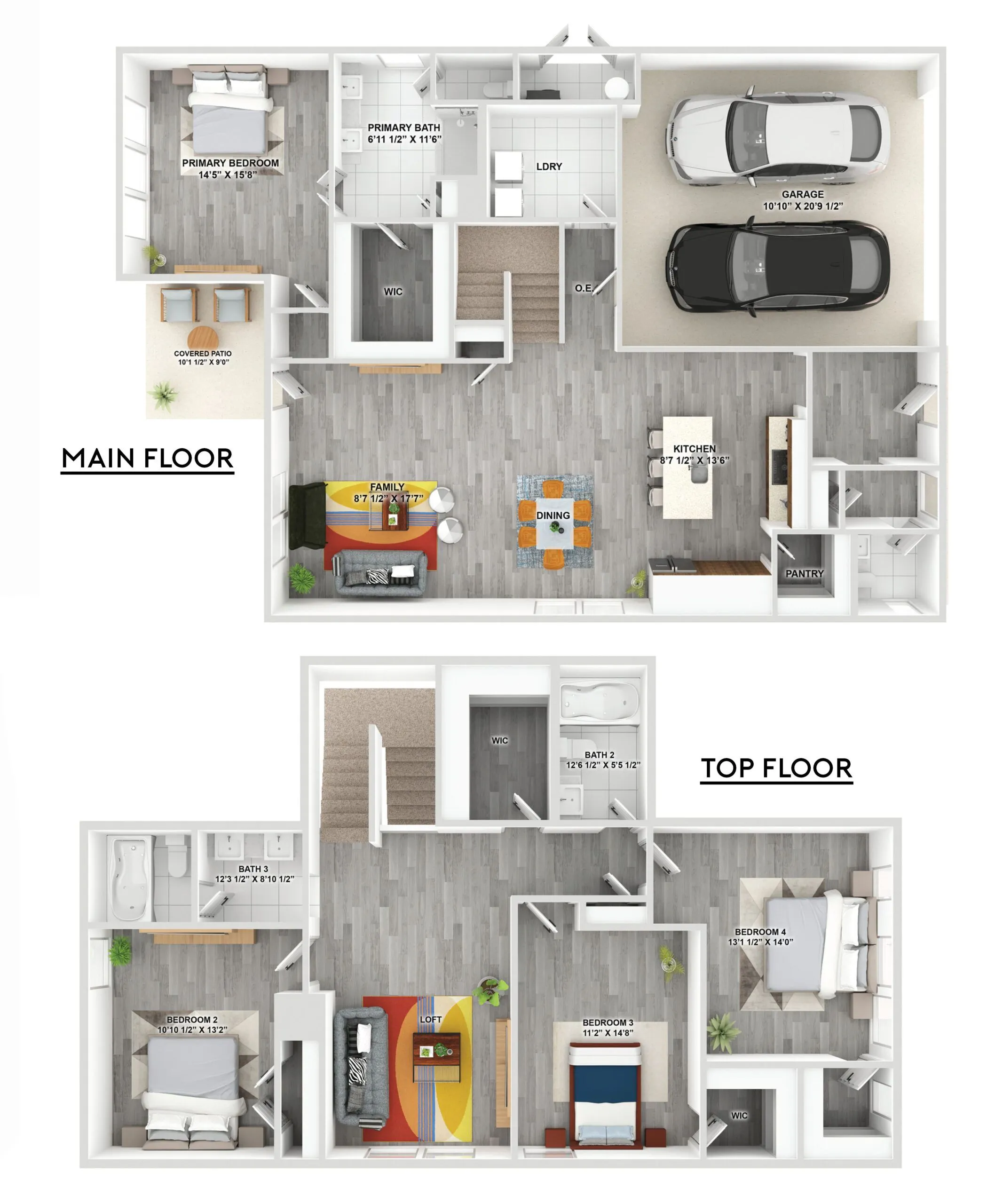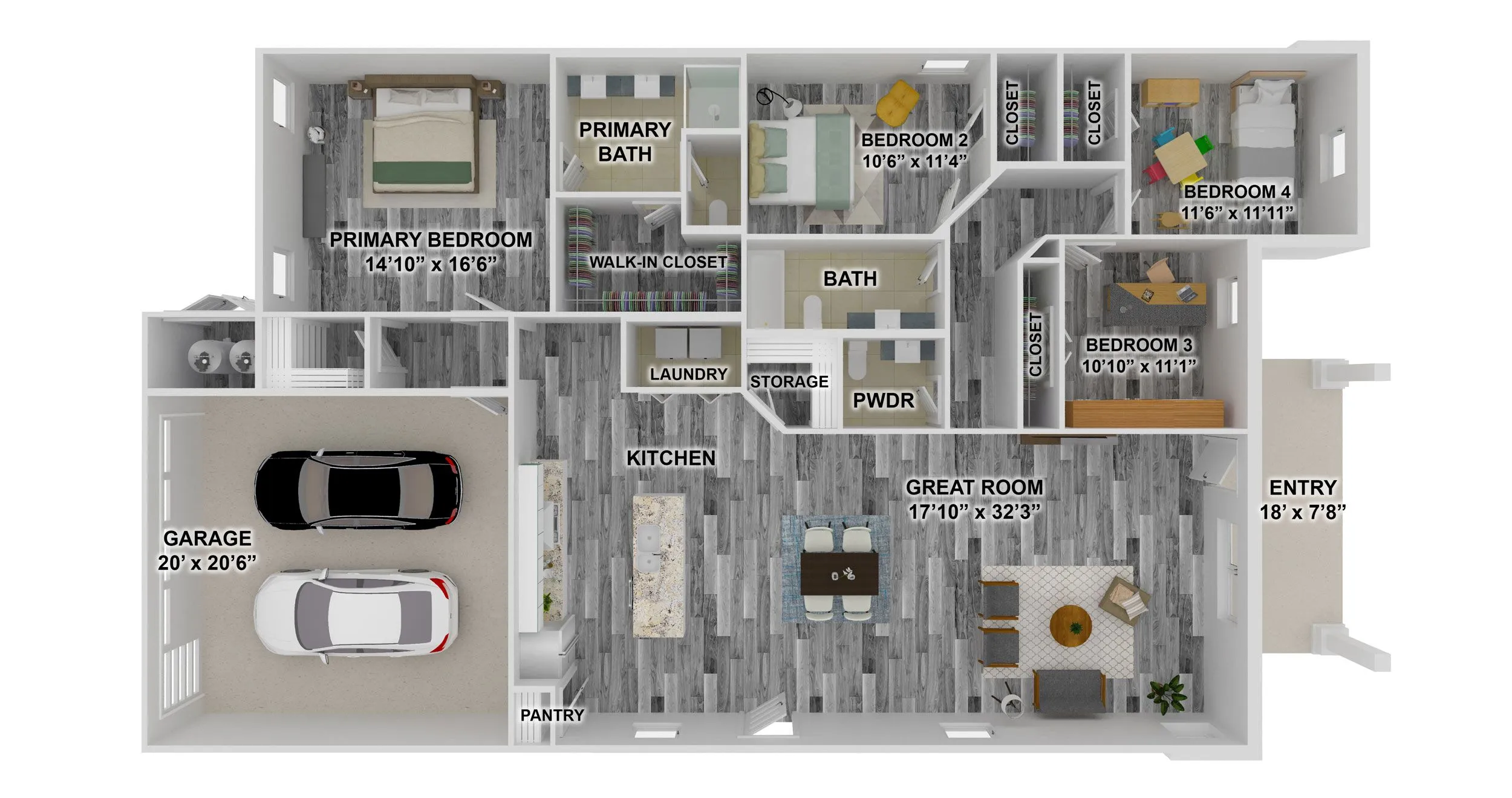 *Floorplan renderings and photos are for illustrative purposes, actual finishes and materials installed in homes may be different. Features, amenities, floorplans, elevations, square footage and designs vary per plan and are subject to changes or substitution.
